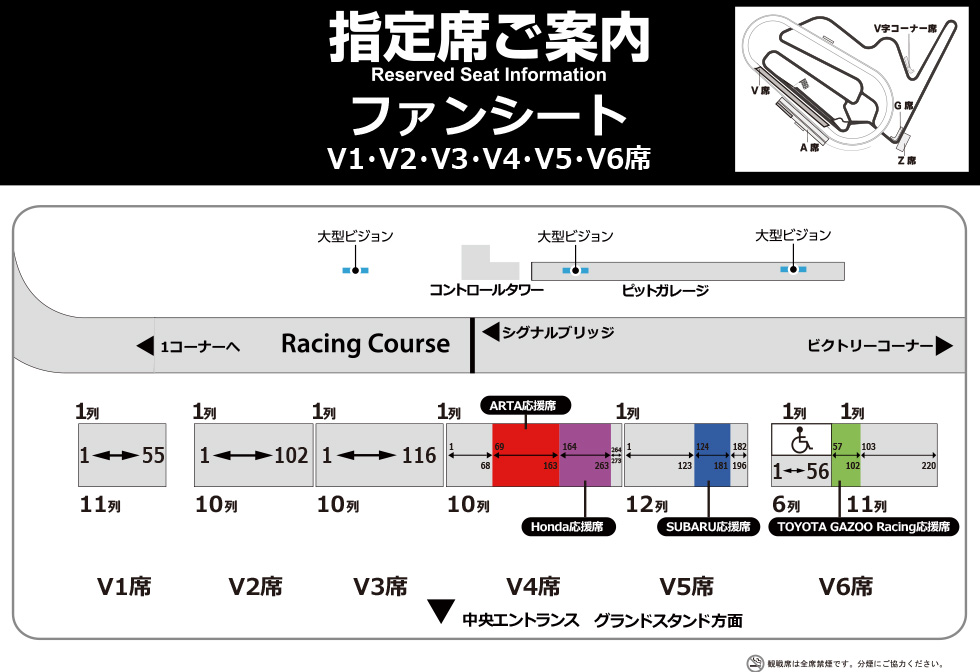 Special Tent Behind V Seats *For customers attending only the qualifying day on November 1 (Sat), support goods will be handed out at the ARTA booth, so please speak to the staff. |