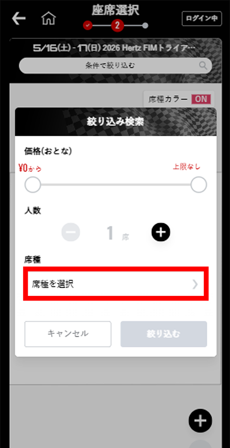 Please select "Mobility Resort Motegi" and proceed to the ticket selection screen.