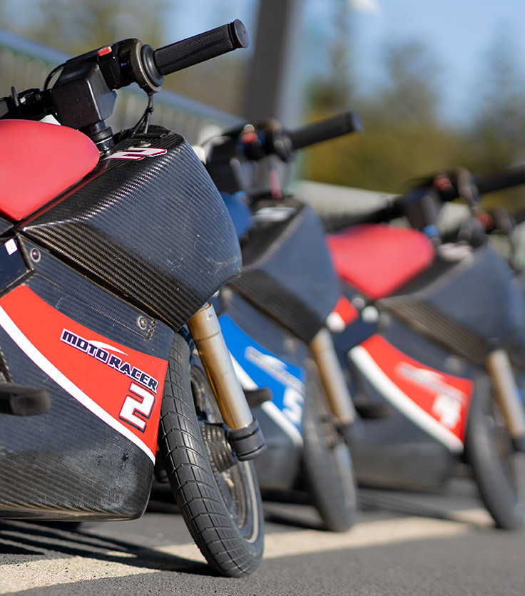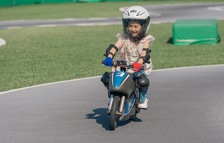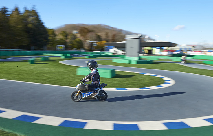 電動小型バイクに乗ってレーサー気分で速さを競える「モトレーサー」。