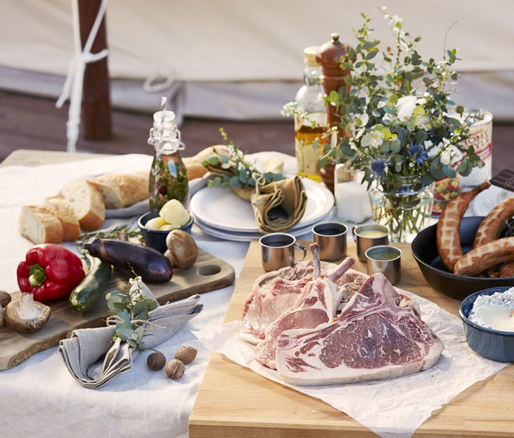 タープの下には、食事をするためのテーブルやチェアを準備しておくのがおすすめです。最近では、ローテーブルやローチェアが流行っていますが、使いやすい高さのものを選ぶと良いでしょう。食事のための調理器具も必須です。バーベキューグリルや包丁、まな板などの調理道具、カトラリーも用意しておきましょう。