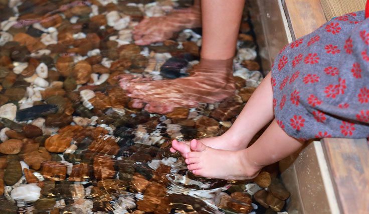 汚れを落とすだけではなく、疲れもとりたいという場合には、足湯ができる簡易なバスタブを持ち込んでみても良いでしょう。それほどたくさんのお湯は必要なく、準備も簡単なため、手軽に楽しむことができます。