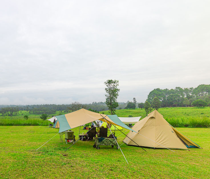 通常、キャンプではテントを設営しますが、タープも一緒に設営することで行動範囲がさらに広がります。また、タープを張ることで囲いができるので、友達や家族だけのプライベートな空間を作ることができます。