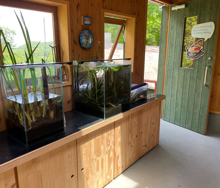 水生生物研究室は、ハローウッズや茂木町に生息している水辺の生きものたちを観察することができる場所です!