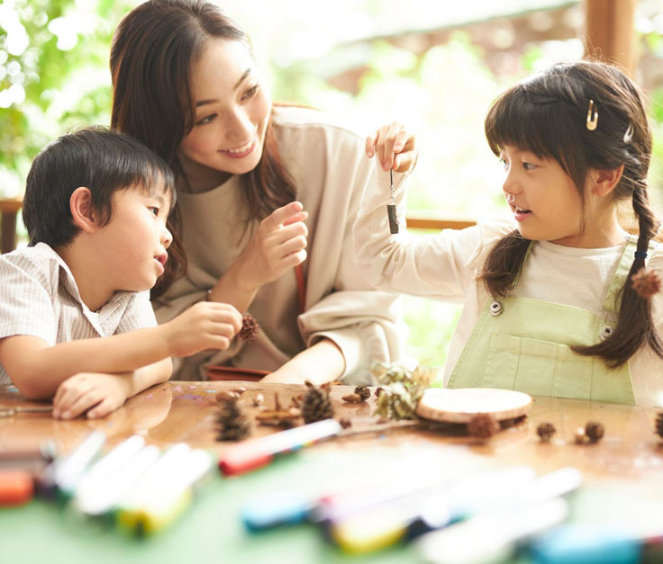 都会ではなかなか触れることのできない自然素材を使ったモノづくりは、子どものクリエイティビティを磨くのにピッタリ。