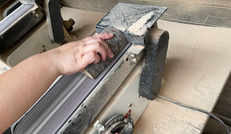 次に、電動ヤスリで木材の割った面をツルツルになるまで磨いていきます。この電動ヤスリは、使う際に十分な注意が必要で、手に当たると皮膚が削れてしまうといった大事故につながる恐れもあります。そのため、親子で気をつけながら操作するのが良いでしょう。完全にツルツルにしたい場合は、長い間ヤスリをかけても良し。木材の風合いを残しておきたいという人は、少しだけヤスリをかけるというのも良し。自分のお好みの加減に仕上げていきます。
