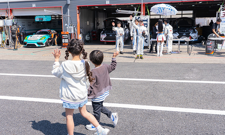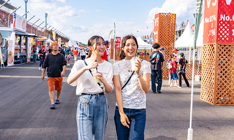 從最後一個彎道起跑到第一個彎道的煞車區域,都能享受震撼的駕駛與聲音的「勝利區露台」。看台附近排列著各式美食餐車,還設有有屋頂的休息區「貴賓觀賽花園」。